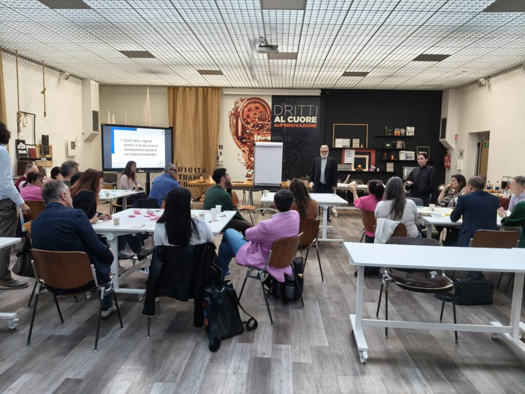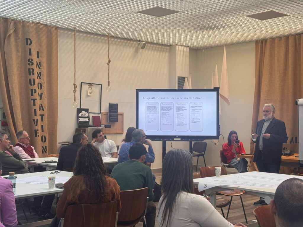 L’ultimo workshop, ospitato dalla Fondazione Aldini Valeriani a Bologna, il Professor Poli ha guidato i partecipanti attraverso lo scenario dei “Tre Orizzonti”, un modello che consente di esplorare le dinamiche del cambiamento e di sviluppare una visione anticipatoria e strategica. L’obiettivo principale è stato quello di fornire strumenti utili per immaginare e costruire un futuro consapevole e desiderato.