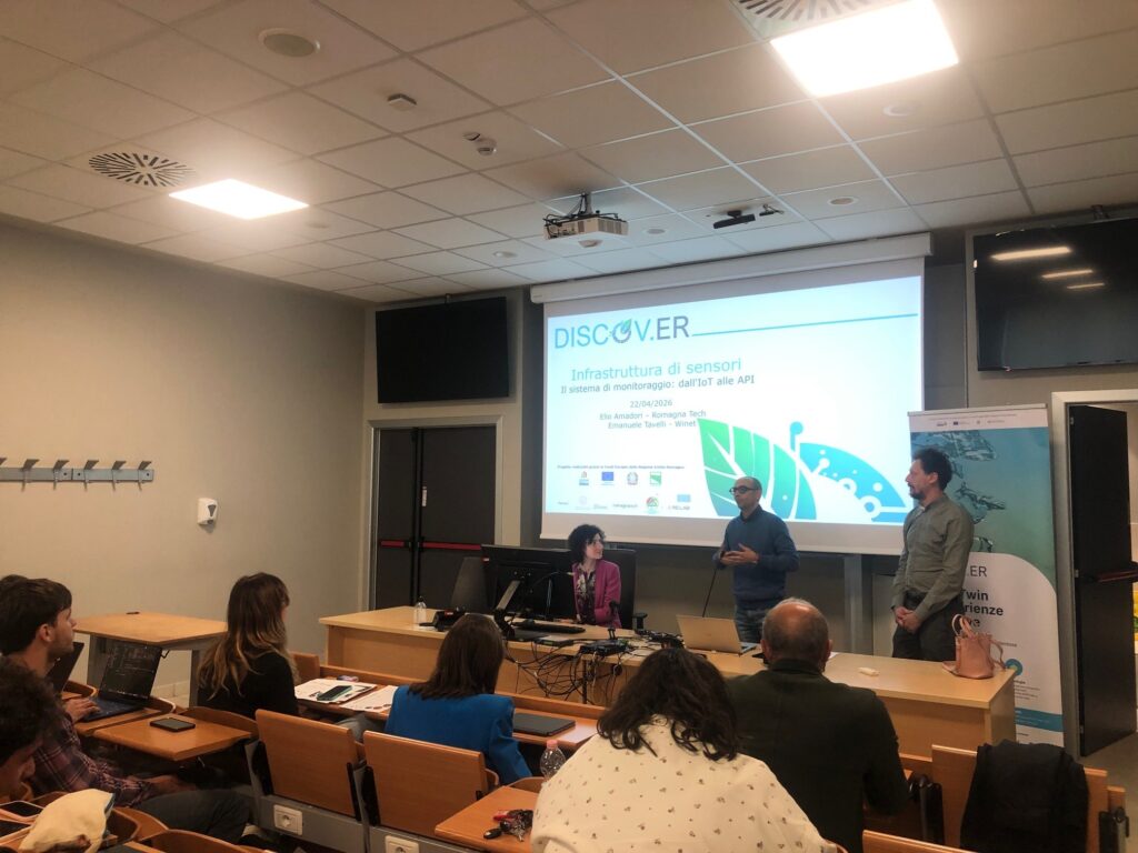 La giornata è proseguita con vari interventi tecnici e scientifici. Elio Amadori di Romagna Tech ed Emanuele Tavelli di Winet hanno esposto il funzionamento dell’infrastruttura di sensori, mentre Catia Prandi dell’Università di Bologna ha presentato una panoramica completa sul progetto DiSCOV.ER, spiegandone gli obiettivi e le applicazioni pratiche.